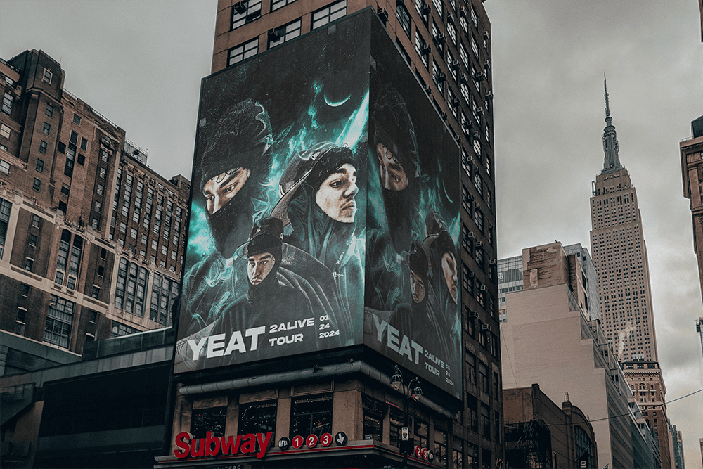 This is a passion project for the artist and producer Yeat. I reimagined the album cover for his project 2 Alive, pulling inspiration from psychedelic visuals and retro aesthetics. I used the typeface “Vantage Regular” by Rian Rahardi, a bold, hand-drawn display font inspired by the psychedelic movement of the 1960s. Its funky, vintage style helped set the tone for the overall vibe. I also expanded the concept into a promotional tour poster to extend the visual identity beyond the cover.